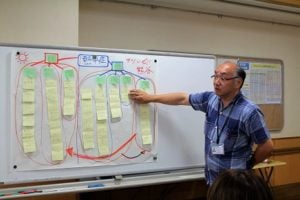 前半の『熱中症予防対策(講師:さざなみ苑 風間看護師)』は、グループワークを中心に熱中症の経験がある職員の体験談を交えながら、参加者それぞれが知識として蓄えているものを出しあい、具体的な対策方法について知識とスキルを共有することができました。