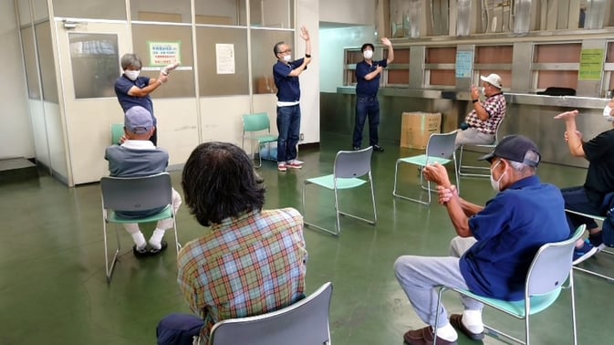 本年度より本格的に、山谷地域で生活している利用者の楽しみの一つになるようなことができないかと『楽らく健康体操』を開催しています。