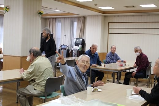 ひな祭りと言えば桜餅。今年の3月3日は木曜日なので、おやつの日ではありませんが、臨時で開催し、みんなで桜餅を食べました。こちらも素敵な笑顔でした。