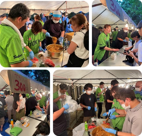 そんな中、我ら有隣協会は今年も焼きそばの販売を担いました!"今年も"と書いたのは、実はこの「せんだがや盆踊り大会」と有隣協会は、それはそれは長くお付き合いさせて頂いているのです。その経緯は後程、理事長にお伺いすることにしましょう!