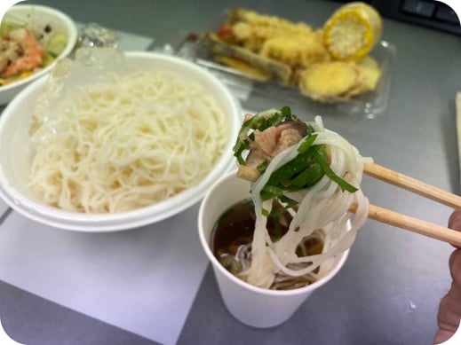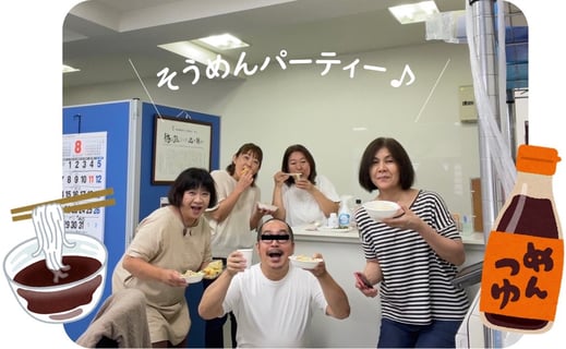 そうめんだけでは物足りないので、天ぷらやサラダなども用意して、かなり豪華なそうめんパーティーとなりました。みんな満腹、大満足でした。