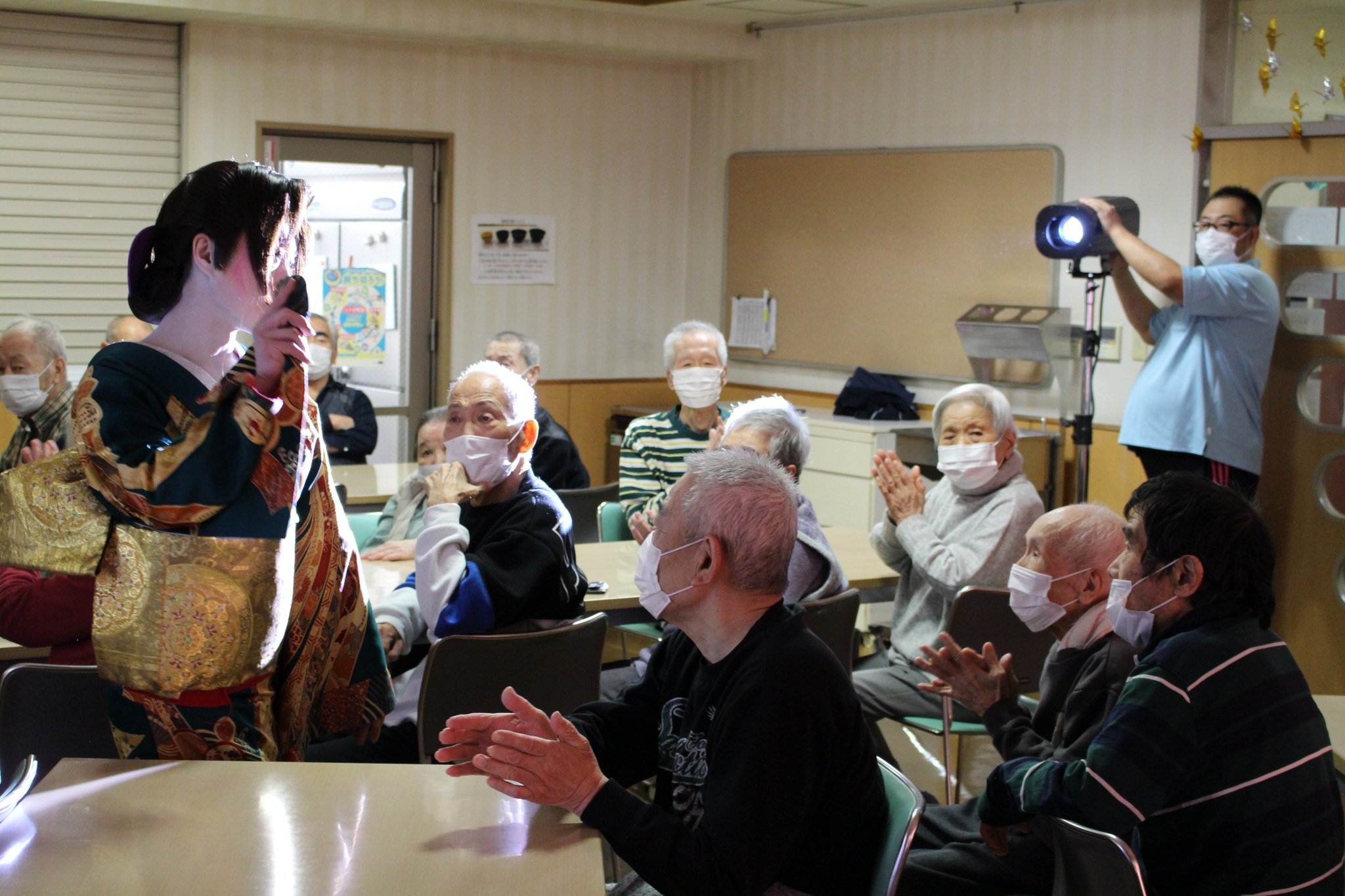 女形、男形、和太鼓、トーク&じゃんけん大会 という流れで40分ほど、あっという間でしたが、ステキな時間を利用者・職員共に堪能しました♪♪♪利用者の「よかったよ~」「楽しかった」の声や、中には涙を流される人もいて、開催できてよかった~とホッとしています。