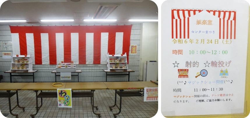 縁日風にお祭り広場に弓矢・輪投げ・射的を設営しました。