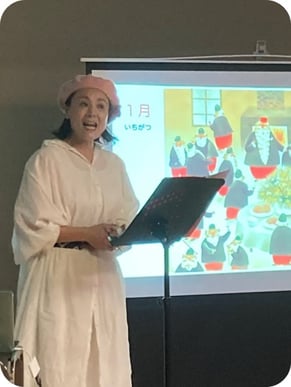 『あのね、サンタの国ではね…』と絵本の読み聞かせ(朗読)が始まりました🎵
