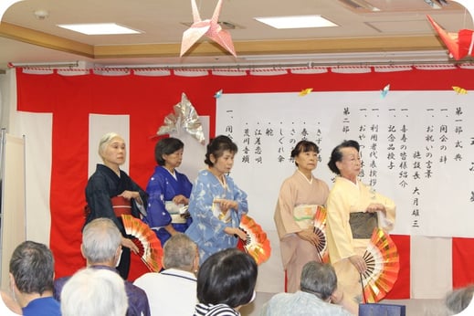 そして今回の目玉、この日のためにボランティアとして来苑していただいた、山吹扇友の会の皆さまによる舞踊ショーです!!