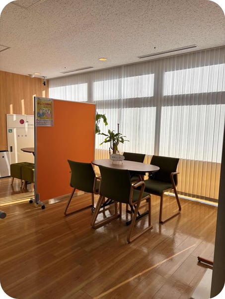 2階に上がると、おしごと相談スペースがあります。お天気の良い日はポカポカと暖かく、夏はクールスポットにもなっています。