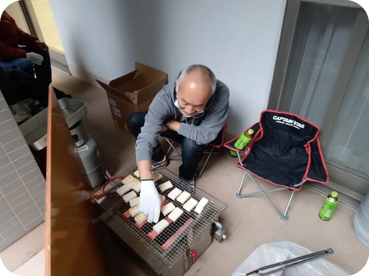 年が明けて、恒例・町会のもち焼き配布イベント!