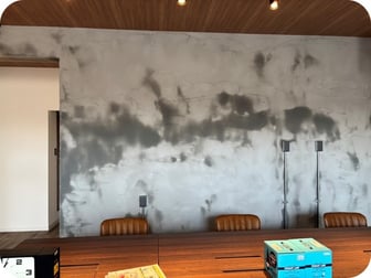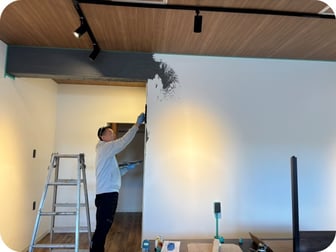 実は今回内装の段階から準備を進めるにあたり、理事長からの提案で、入って正面の壁にDIYで漆喰を塗ることになりました。移転直前になってしまいましたが、理事長に教えていただきながら漆喰塗り作業。通常業務がありましたので、全員一緒に作業することはできなかったのですが、いい感じに仕上がりました。