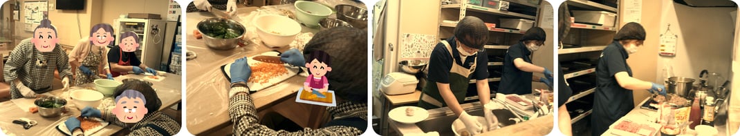 はるかぜでは、1日3食ともに外注したお弁当もしくは自分で購入して食べる形式をとっています。そんななかでも料理教室は、利用者・職員のコミュニケーションの場として、またできたてのものを食べる場として月1回希望者を募って調理を行っています。