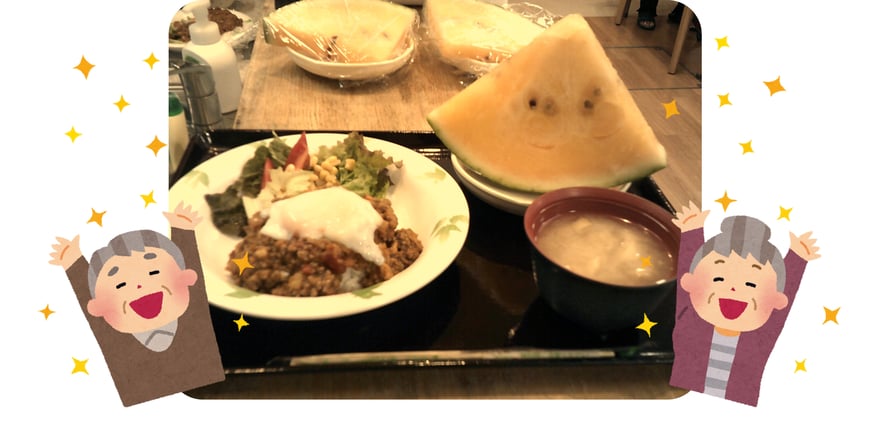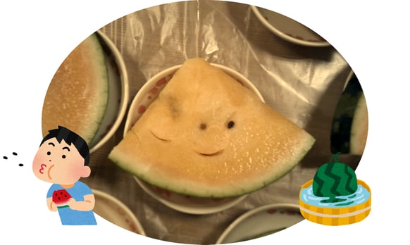 「味はどうですか?」「おいしいね」「スイカがおっきくて食べきれないよ」と職員・利用者の会話がはずみます。