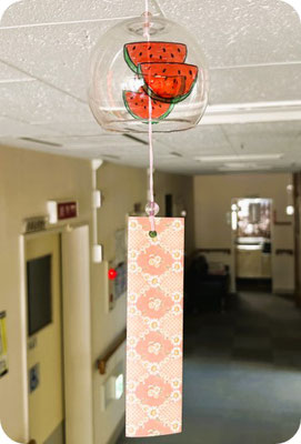 油性マジックを使いペットボトルに絵を書いたり色を塗ったり、かなり苦戦していましたが…なんとか13名分の個性あふれるspecial風鈴が完成しました♪