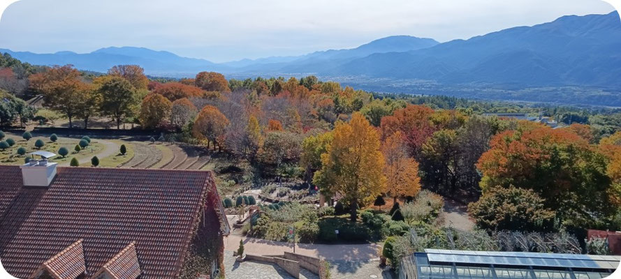 写真の塔は展望台になっており、南アルプスの山々がよく見られましたよー