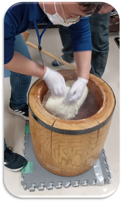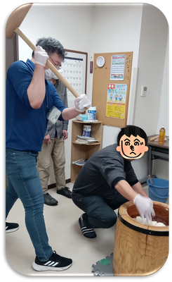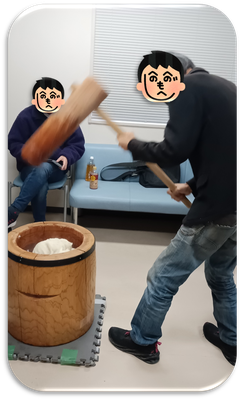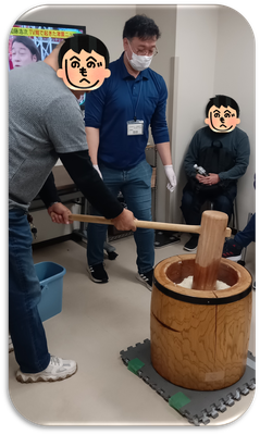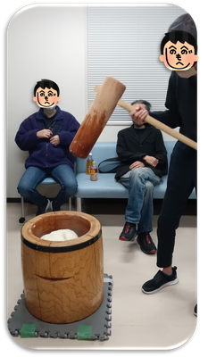 本番のもちつきでござい~なかなかね、杵がじつは重くって…(;''∀'')自分のイメージと違ったフォームになっちゃうのよね~
