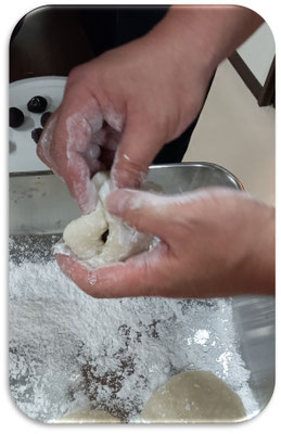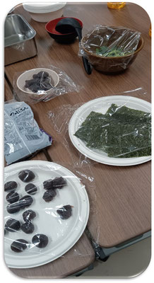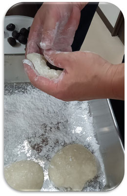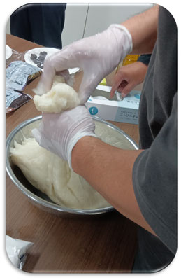 そのあとに食べるときのトッピングも準備して~そして「ヨイショ~」の前にもち米をコネコネします。