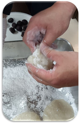 通所職員は力持ちだけじゃなーい!(^^)!あんころもちを包むこの器用な手先!どんどん作業がすすんでいくよ~アツアツのもちをちぎって…つきたての餅は鮮度が命★