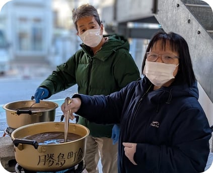 毎年恒例の、冬の町会行事!豚汁&おしるこのふるまい