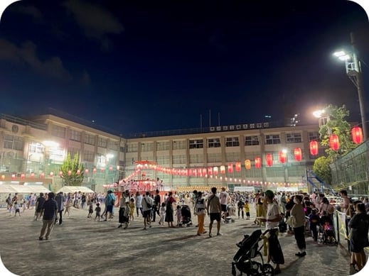 8月某日、2日にわたって尾久小学校の校庭で「夏祭り盆踊り大会」が開催されました。