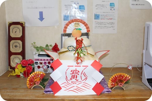 千寿苑の一年は、元旦9時からの年頭挨拶で始まります。 食堂にて施設長、職員から年始の挨拶。今年“も”上園支援員の挨拶に利用者のみんなは大笑いしておりました。今年一年、上園支援員が利用者皆さんの笑顔を引き出し、笑顔溢れる一年にしてくれる予感です。 食堂では利用者みなさん向けて、そのあとはお部屋を回り、お一人ずつご挨拶します。