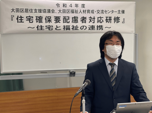 いつも有隣協会のブログをご覧いただきありがとうございます。居住支援担当の米澤です。 令和5年1月13日、「大田区居住支援協議会」と「大田区福祉人材育成・交流センター」が主催する庁内、関係者対象の「住宅確保要配慮者研修」に講師として登壇させていただきました。