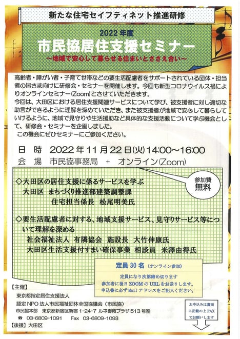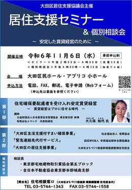【大田区生活支援付すまい確保事業】大田区居住支援セミナー&個別相談会(11月6日開催告知)