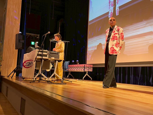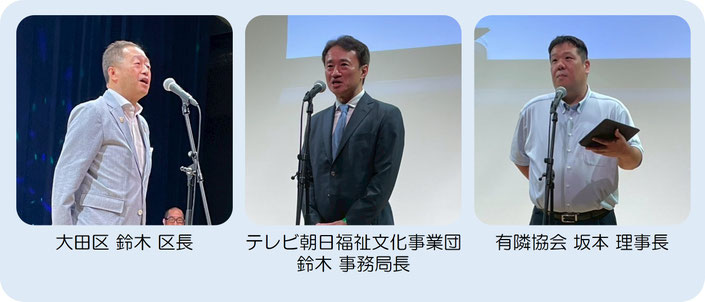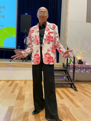 シルバーディスコは、14時00分に開場、14時20分よりスタートとなりました。主催である有隣協会 坂本理事長の開催の挨拶に始まり、今回のシルバーディスコへ助成をいただいたテレビ朝日福祉文化事業団の鈴木事務局長へお言葉をいただきました。テレビ朝日福祉文化事業団は、1977年(昭和52年)にテレビ朝日が母体となって、民間放送系でははじめて設立された社会福祉法人です。「児童福祉」「母子福祉」「障がい者福祉」「高齢者福祉」など、時代の要請に迅速に対応しながら、創意工夫を持って社会福祉事業に取り組んでいらっしゃいます。続いて後援をいただいた大田区より、なんと鈴木晶雅区長にお越しいただきました。大田区は、高齢者の皆さんが住み慣れた地域で安心して暮らし続けられるまちを目指して、高齢者福祉の施策を進められています。区長の登壇に来場者からは一段と大きな拍手が起こり、「よ!区長!!」と声がかかるなど、大変な人気でした。