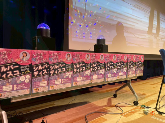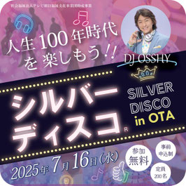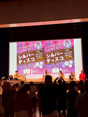シルバーディスコとは、70年代~80年代にディスコで青春時代を謳歌された、現在高齢者の皆さまを対象に、DJが70年代~80年代の音楽を流し、ミラーボールの下、健康促進や介護予防、コミュニケーションを目的として開催される「かっこよく」、「でも誰でも踊れる」ディスコです。ダンスレッスンコーナーもあるため初心者でも安心!シルバーディスコの第一人者である大人気のDJ OSSHYさんをお招きし、このシルバーディスコが、なんと大田区では初めての開催となりました。