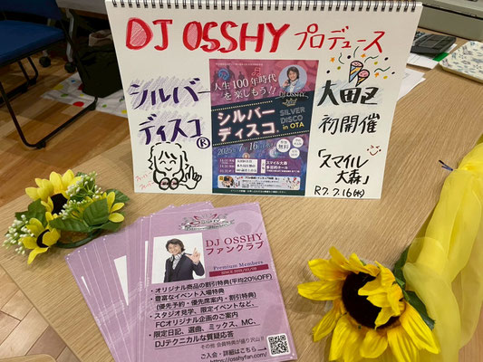 DJ OSSHYさんとご一緒させていただいた印象ですが、常に笑顔で、ものすごく感じが良く、とても素敵な方でした!シルバーディスコの開催初心者の我々スタッフに対し、「大丈夫ですよ!」と安心をくださいました。本当に格好良かったです。ステージでも、ファンの方が次々に「OSSHYさん今日もよろしく!」と声をかけに来られ、そのお一人お一人にとても丁寧に接していらっしゃいました。DJ OSSHYさんの人柄が、人を集めるのだと感じました。